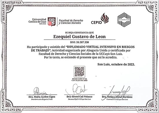 - Diplomado virtual intensivo en riesgos de trabajo. UCCuyo San Luis